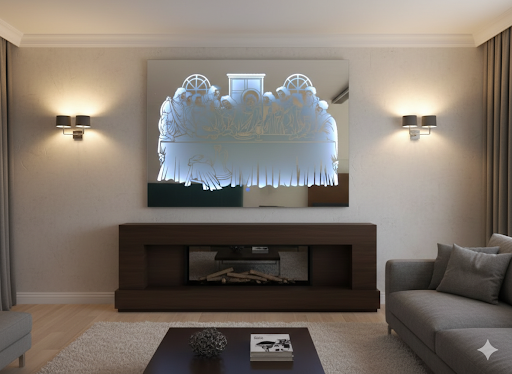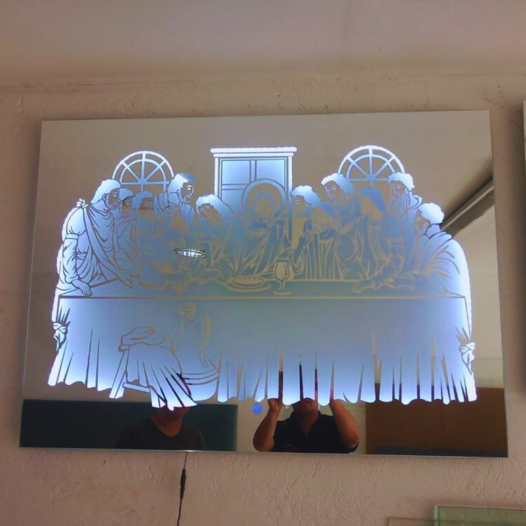 Este espejo La Última Cena es flotante para zonas comunes de tu casa, cuenta con iluminación LED y arenado para un diseño elegante y moderno. Con encendido táctil y control remoto, es una linda decoración práctica y sofisticada para tu hogar. Disfruta de una iluminación perfecta y un estilo único gracias a este espejo.